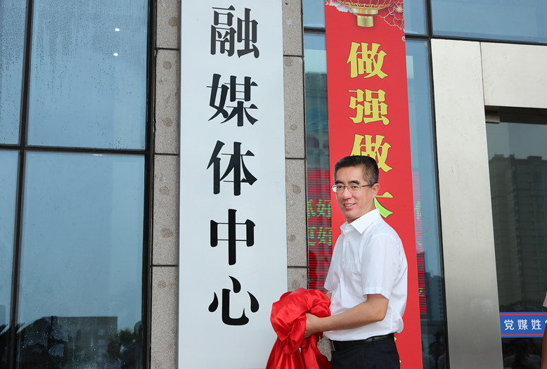 8月25日,市委常委、縣委書(shū)記孫軼為縣融媒體中心揭牌。 (本報(bào)記者 陳其龍 攝)