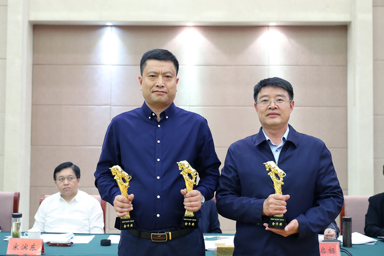 獲得金牛獎的坎北街道、縣教育局負(fù)責(zé)人上臺領(lǐng)獎。