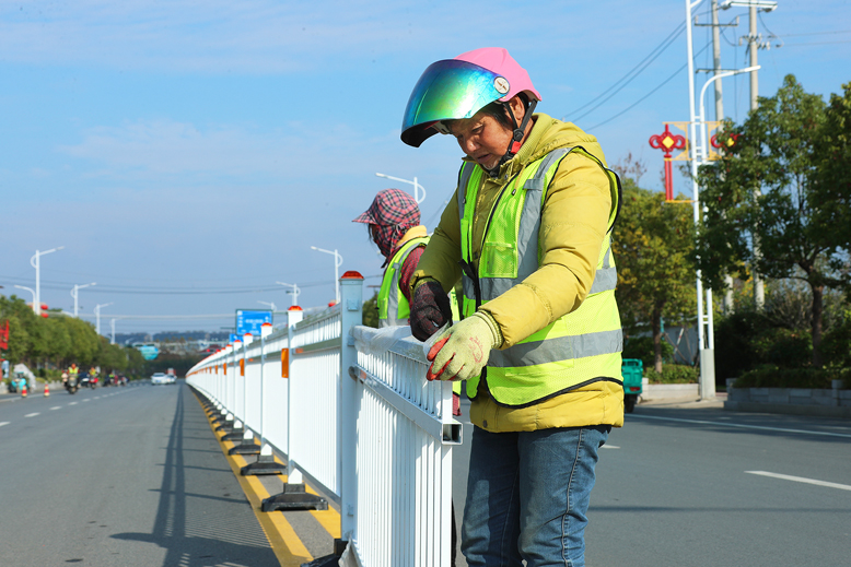 環(huán)衛(wèi)工人在擦拭街邊垃圾桶