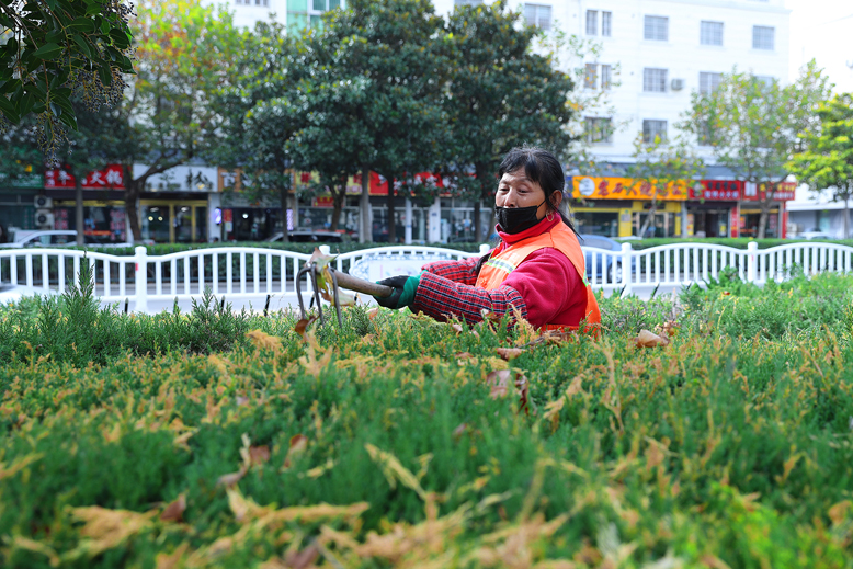 環(huán)衛(wèi)工人清理綠化帶的垃圾