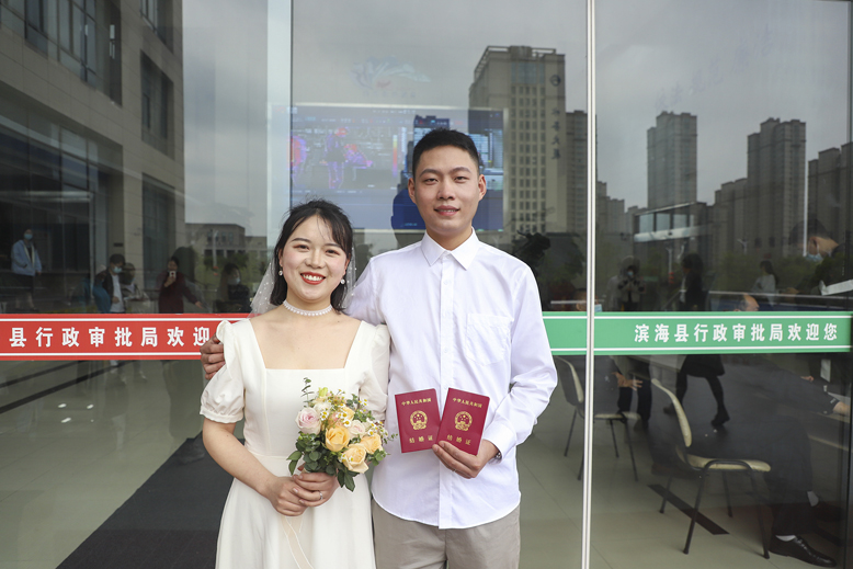 因?yàn)橹C音“我愛(ài)你“,每年5月20日,很多新人都會(huì)相約在這個(gè)特別的日子,牽手領(lǐng)取“紅本本”。昨天,記者來(lái)到縣民政局婚姻登記處,發(fā)現(xiàn)新人們排著長(zhǎng)隊(duì),臉上都洋溢著幸福的笑容,在等待辦理結(jié)婚證。據(jù)了解,當(dāng)日,我縣有近200對(duì)新人領(lǐng)取結(jié)婚證。