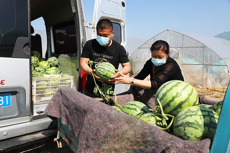 立夏時(shí)節(jié),我縣頭茬西瓜已開始上市。5月5日,記者來到通榆鎮(zhèn)三埝村一家西瓜種植基地里見到,一個(gè)個(gè)成熟的西瓜正等待采摘,進(jìn)入市場銷售。圖為工人們正在田間采摘西瓜并裝車。
