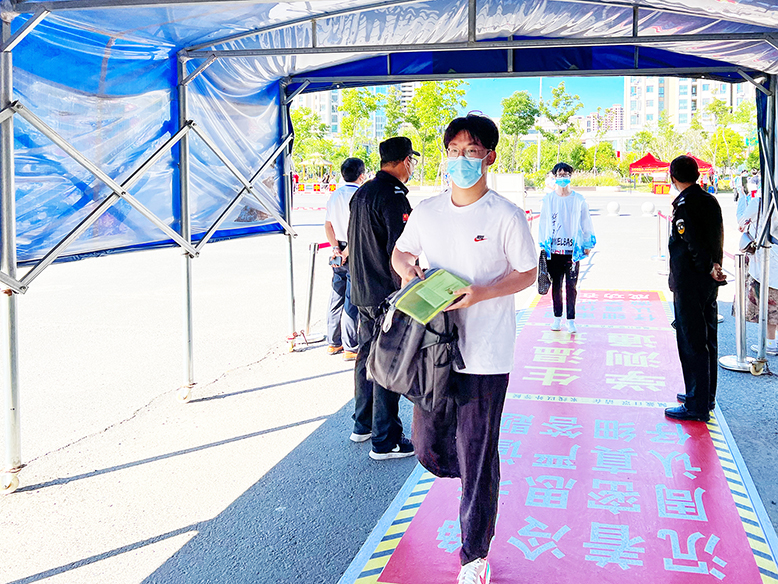 6月7日,2022年全國高考第一天,我縣4221名考生奔赴考場,迎接人生中這場重要的戰(zhàn)役。考場外,老師、家長齊上陣,為考生們加油助威;縣相關(guān)部門提供一系列暖心服務(wù),為考生們保駕護航。 圖①首場語文考試結(jié)束后,考生們輕松走出考場。 圖②交警為送考車輛提供熱心服務(wù)。 圖③考生通過測溫通道順利進入考場。 圖④考點外,手持鮮花等候考生的家長。