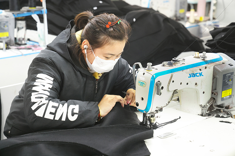 2月21日,記者走進曼姿制衣公司生產(chǎn)車間看到,一排排機器馬力全開,工人們正跟著縫紉機的節(jié)奏熟練趕制訂單,力奪首季“開門紅”。